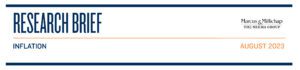 “Supercore” CPI at favorable level. The headline consumer price index increased by 3.2 percent year-over-year in July, trending up slightly from June’s 3.0 percent reading. Accelerated cost increases for food and some forms of energy ticked up the headline statistic for the first time since June 2022. While this could signal a bumpier inflation path ahead, market expectations for a continued CPI slowdown are anchored by a cooling job market and easing price pressures for most goods and services. Core CPI, which omits food and energy costs, slowed to 4.7 percent year-over-year in June, its lowest rate since October 2021. Further removing shelter from the measure, “supercore” CPI only lifted by 2.5 percent year-over-year. The housing component of inflation tends to be a lagging indicator that is expected to materially subside, reducing inflationary pressure.