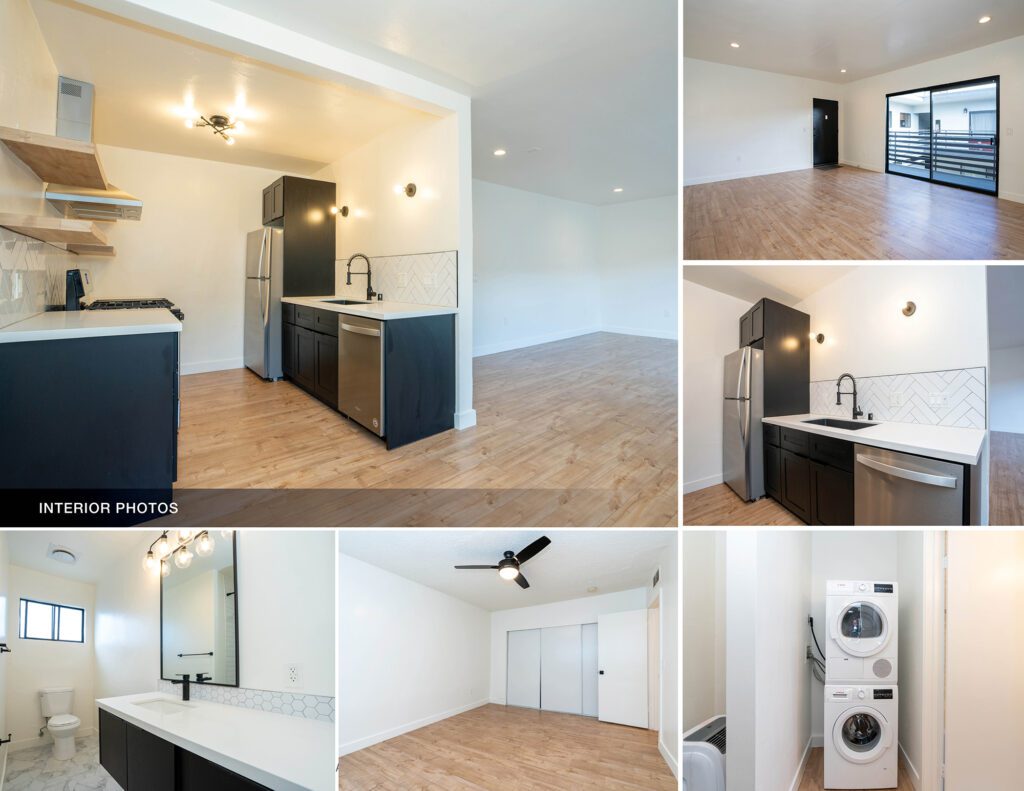 Ownership has extensively renovated all units, featuring hardwood flooring, modern kitchens with updated cabinetry and tile backsplashes, recessed lighting, stainless steel appliances, contemporary lighting fixtures, portable AC units, modern bathrooms, and in-unit stacked washers and dryers. Many units also feature private patios or balconies.